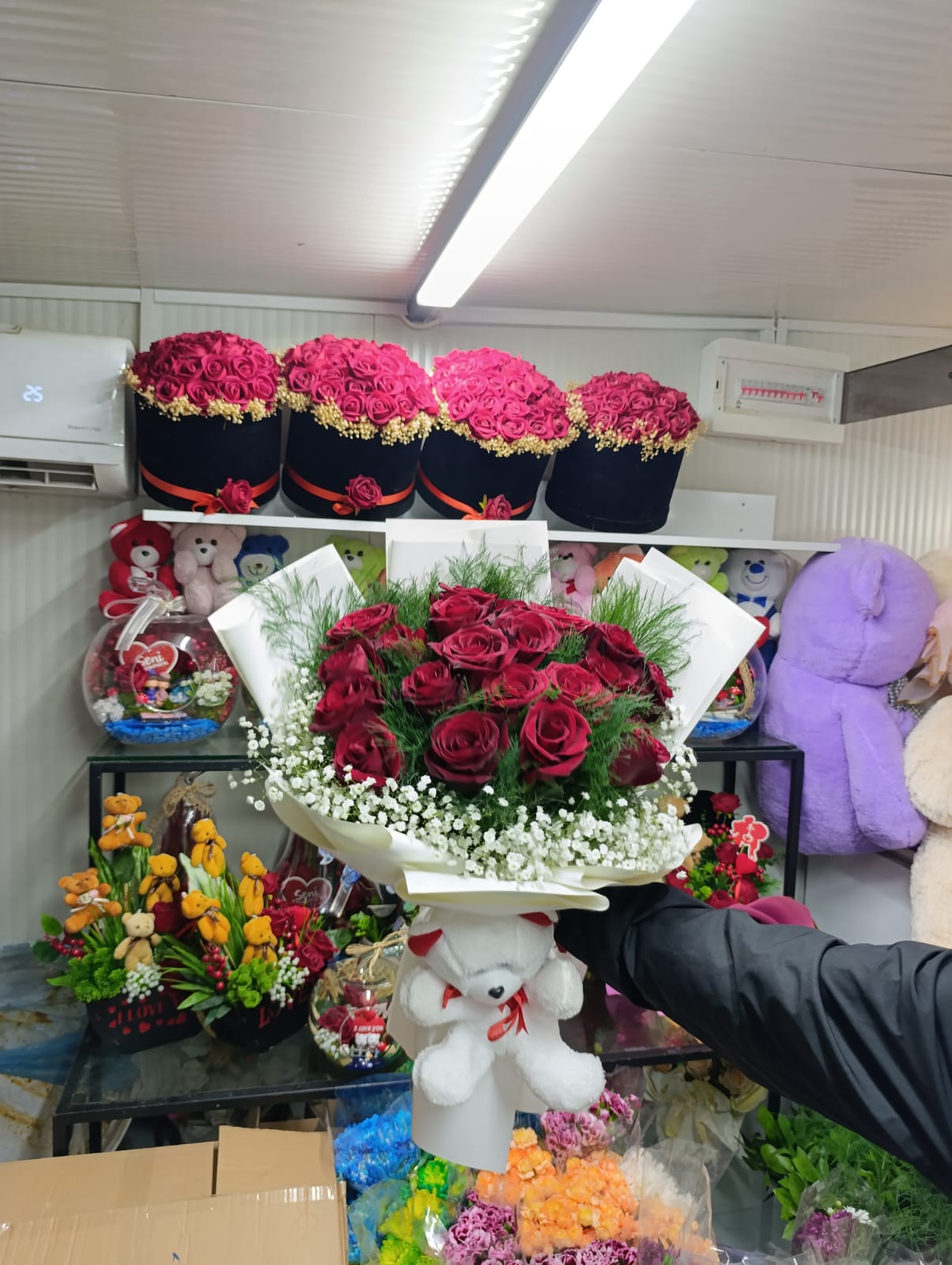 Antakya Mert Çiçekçilik’in özel tasarımı gül ayıcık buketi, şıklığı ve tatlılığı bir arada sunar. Güllerin zarif dokunuşu ve sevimli ayıcık figürü, sevdiklerinize hem duygusal hem de eğlenceli bir hediye seçeneği sunar. Bu buket, özel anlarınızı tatlı bir şekilde taçlandırmak için mükemmel bir tercihtir.
